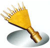扇形噴頭是一種多嘴散射噴頭,它是將一些直射小噴嘴設在同一個配水室上,噴水造型尤如孔雀開屏,又像扇面。因此,又稱孔雀或孔雀開屏噴頭。可垂直安裝,也可傾斜安裝。